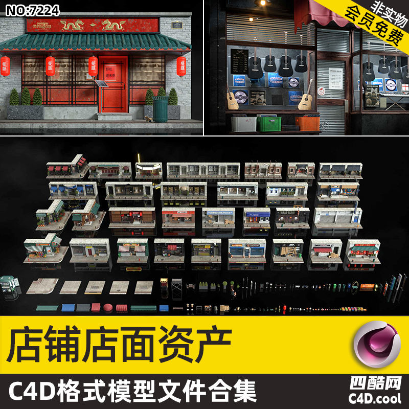 这是店铺店面资产 C4D 模型合集,包含的物品(对应模型)有: