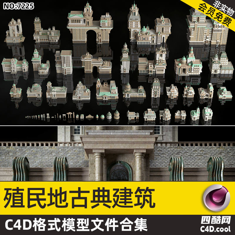 这是殖民地古典风格建筑 C4D 模型合集,包含的物品(对应模型)有: