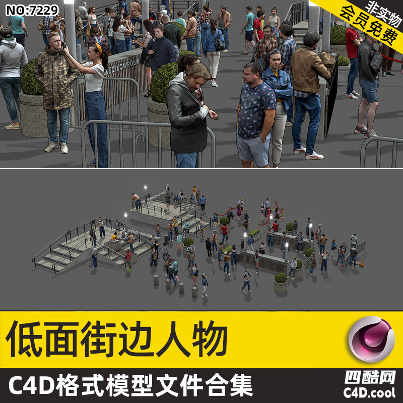 这是低面风格街边人物 C4D 模型合集,包含的物品(对应模型)有:
