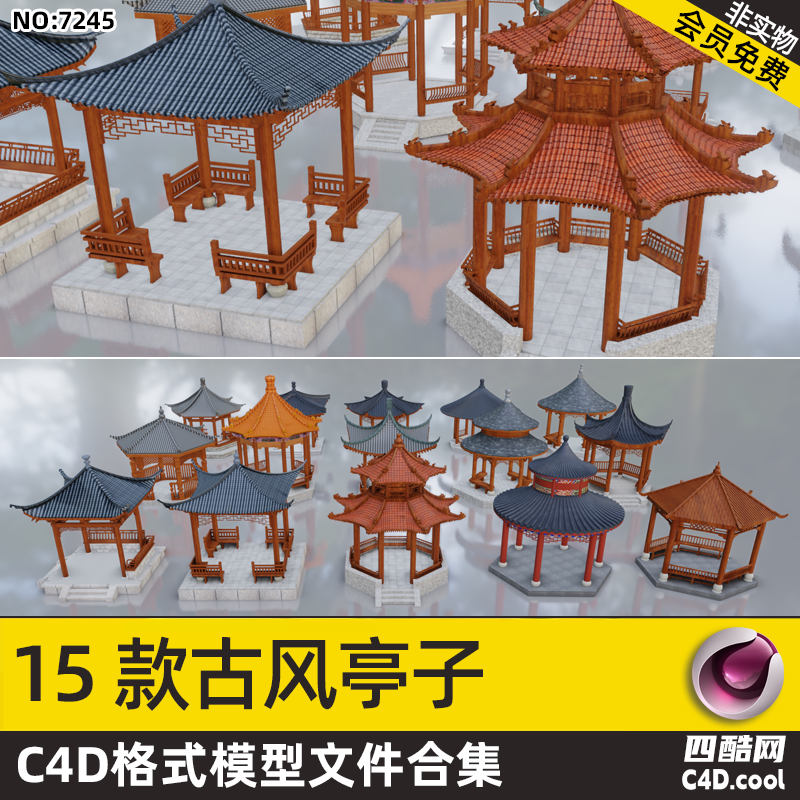 这是古风亭子风格 C4D 模型合集,包含的物品(对应模型)有: