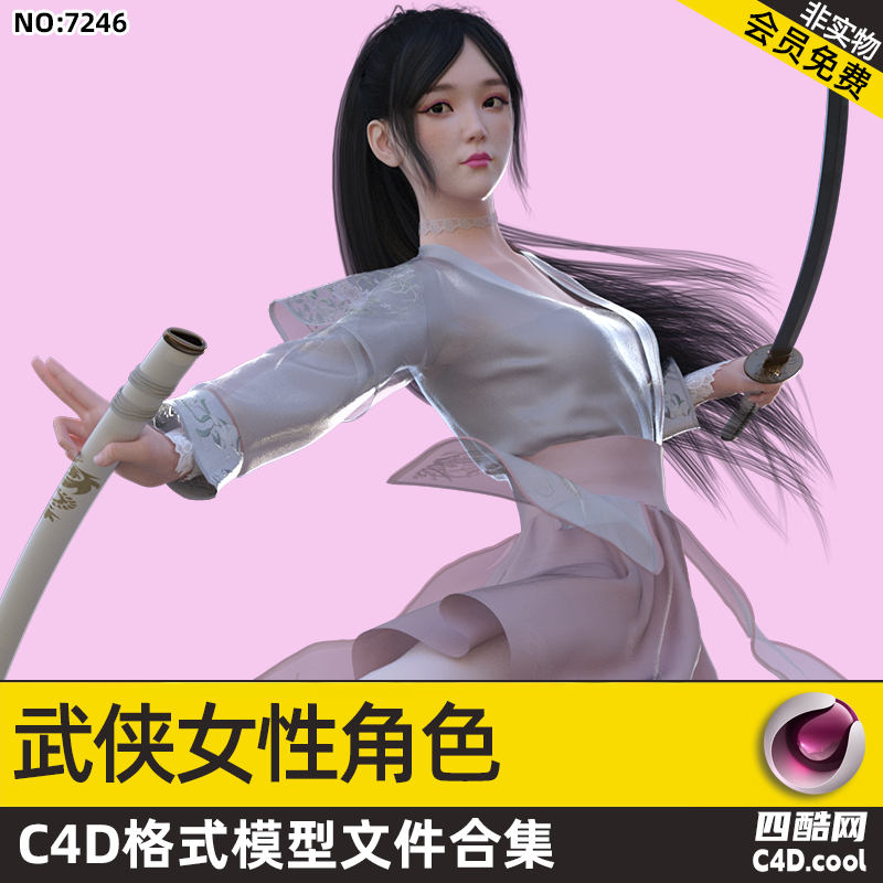 这是武侠风格女性角色 C4D 模型合集,包含的物品(对应模型)有:
