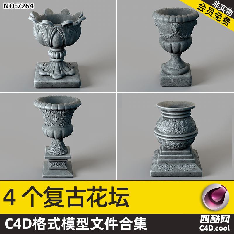 这是复古花坛风格 C4D 模型合集,包含的物品(对应模型)有: