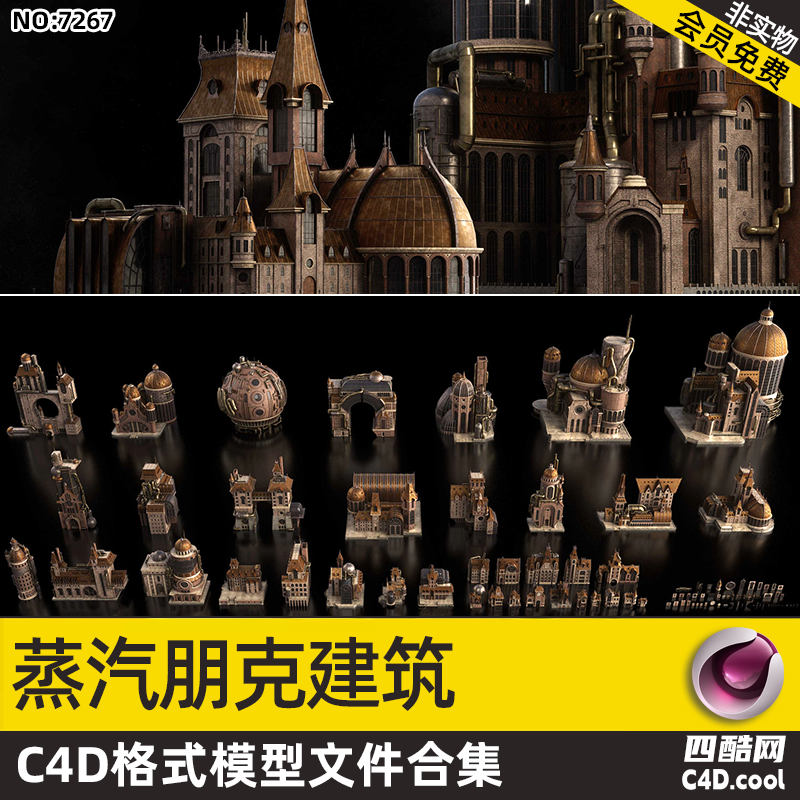 - 场景配套:不同规格的蒸汽朋克建筑群模块(大型主建筑、中型配套建筑、小型装饰建筑)