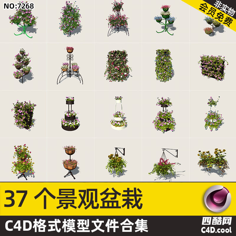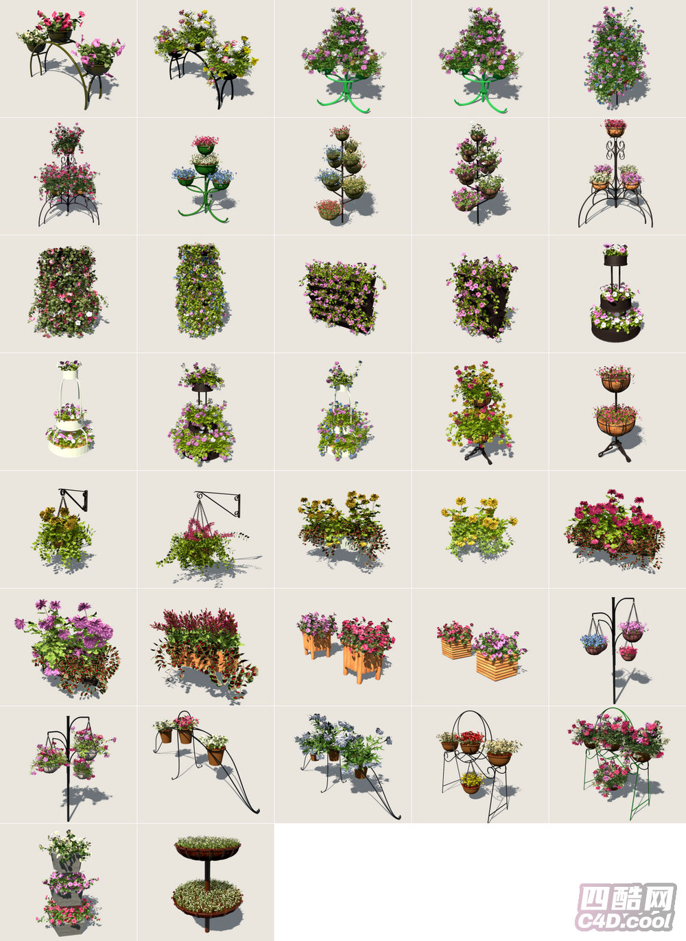 - 花艺组件:盆栽花卉(含藤本花、多色盆栽花)、花箱花艺、垂吊式花艺