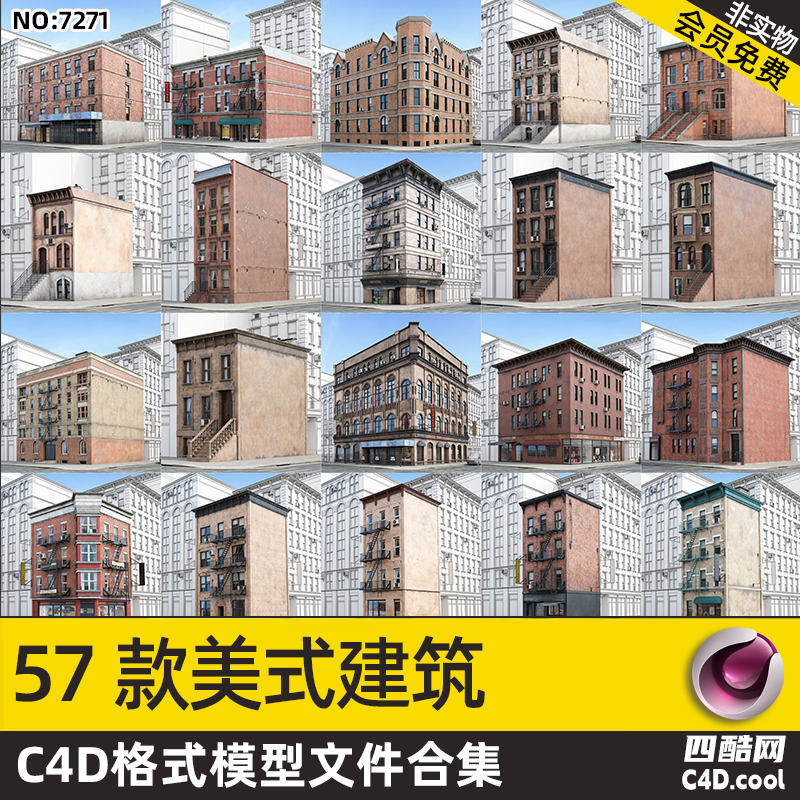 这是复古城市建筑风格 C4D 模型合集,包含的物品(对应模型)有:
