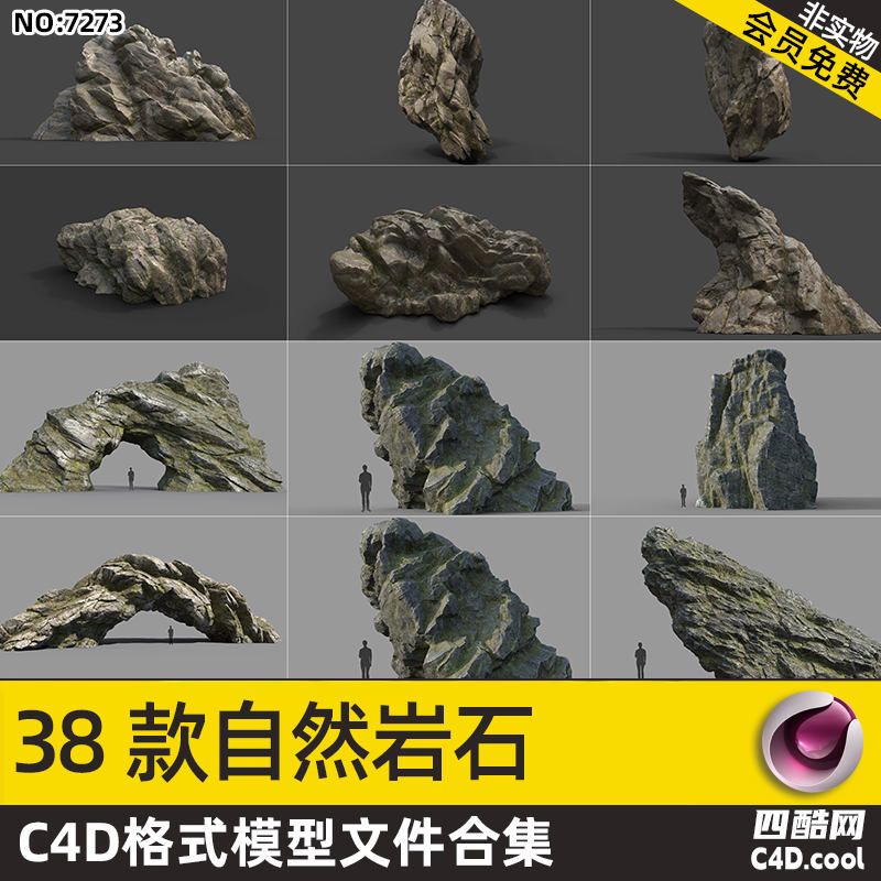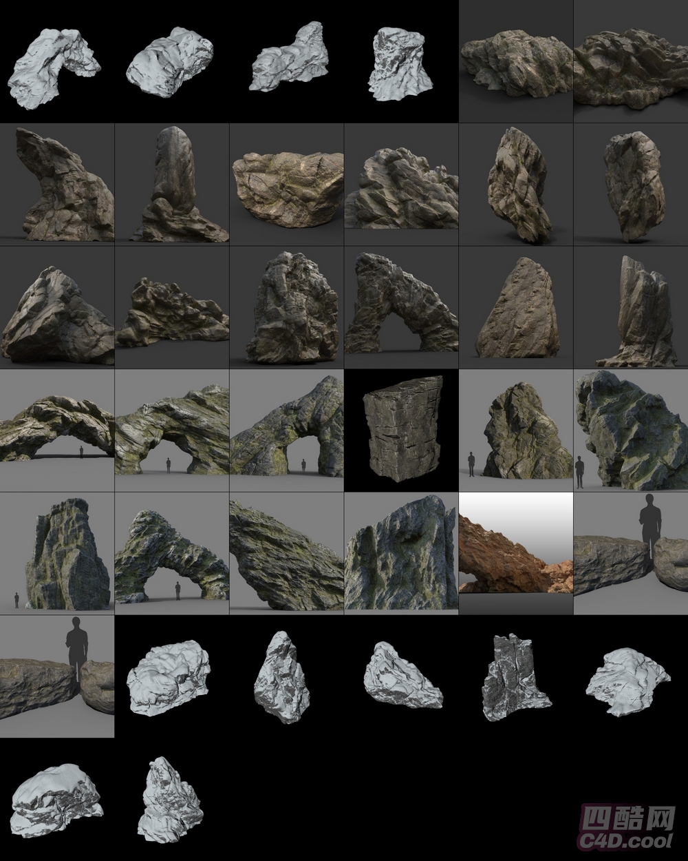 这是自然岩石风格 C4D 模型合集,包含的物品(对应模型)有: