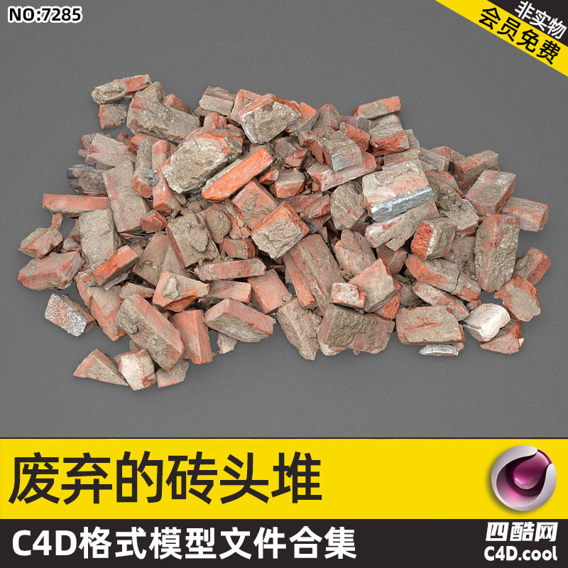 这是废弃砖头堆风格 C4D 模型合集,包含的物品(对应模型)有:
