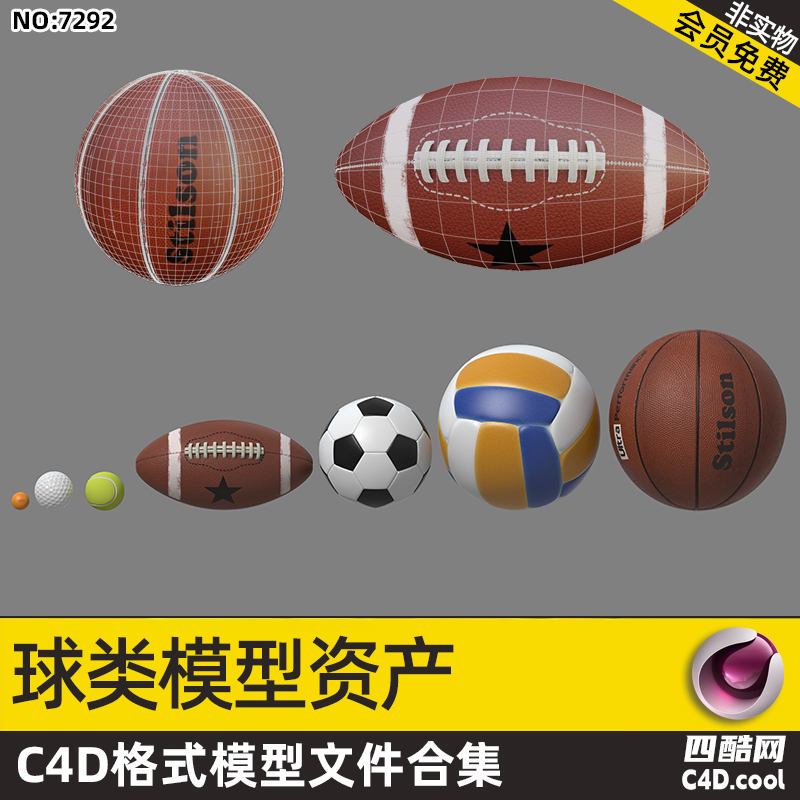 这是运动球类风格 C4D 模型合集,包含的物品(对应模型)有: