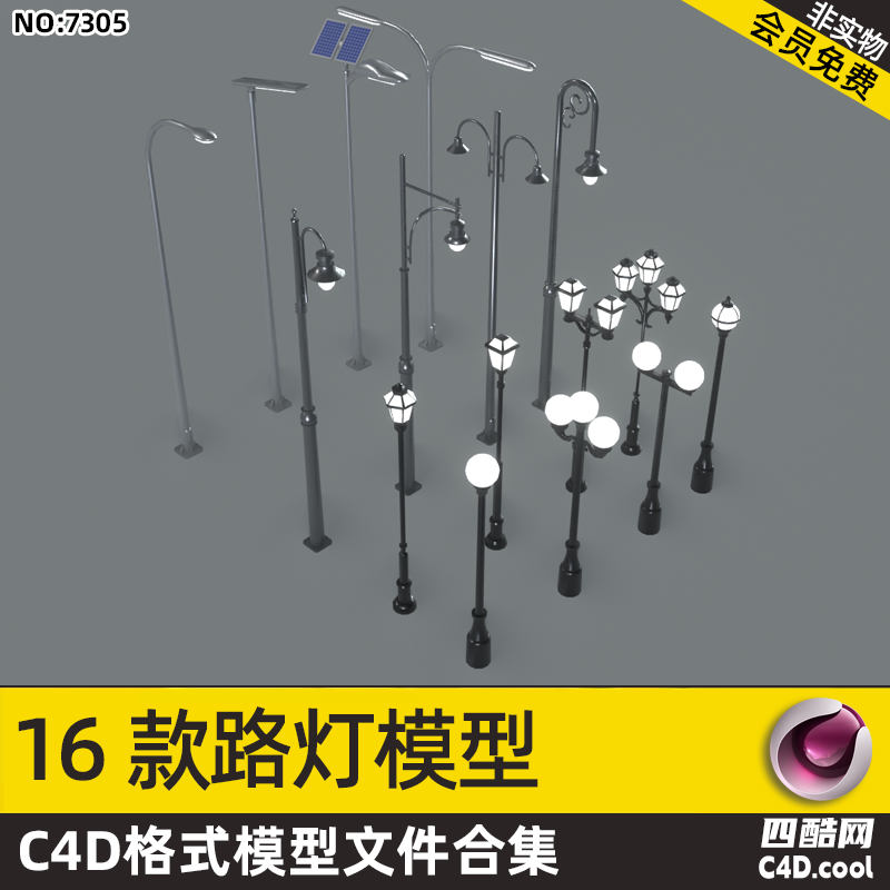 C4D 模型】16 款路灯模型合集,城市 / 街道场景直接搭建!