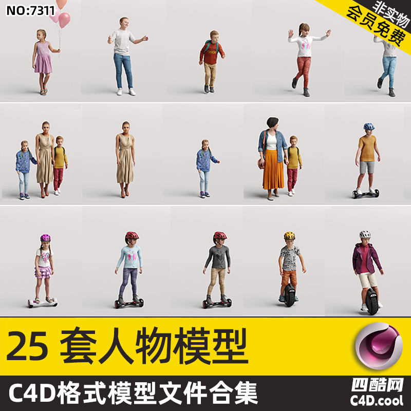 这是生活类人物角色风格 C4D 模型合集,包含的物品(对应模型)有:
