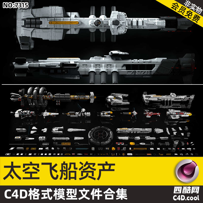 这是太空飞船风格 C4D 模型合集,包含的物品(对应模型)有:
