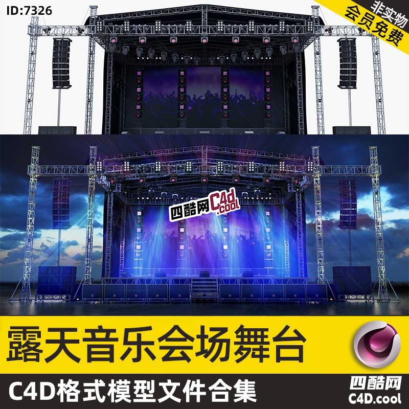 这是一套大型户外演出舞台 C4D 模型,包含的核心内容如下: