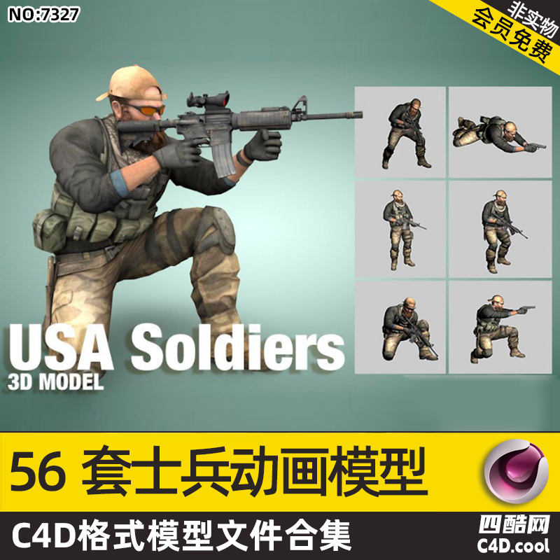 这是一套写实风格美军士兵绑定动画 C4D 模型包,包含的核心内容如下: