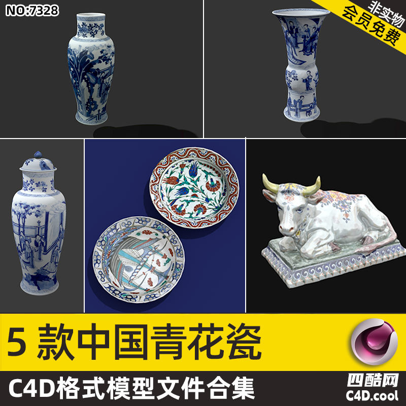 这是一套中式古典陶瓷器 C4D 模型包,包含的核心内容如下: