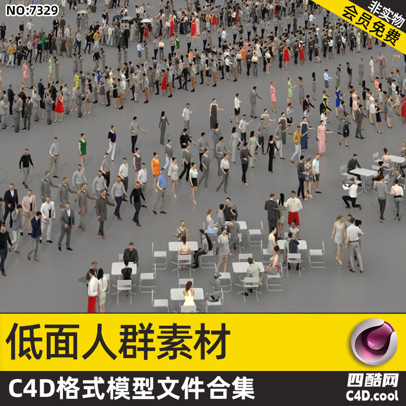 • C4D 低面人群模型、低多边形人物素材、城市广场人群模型、展会休闲桌椅模型、商务休闲人群素材、大场景人群填充模型