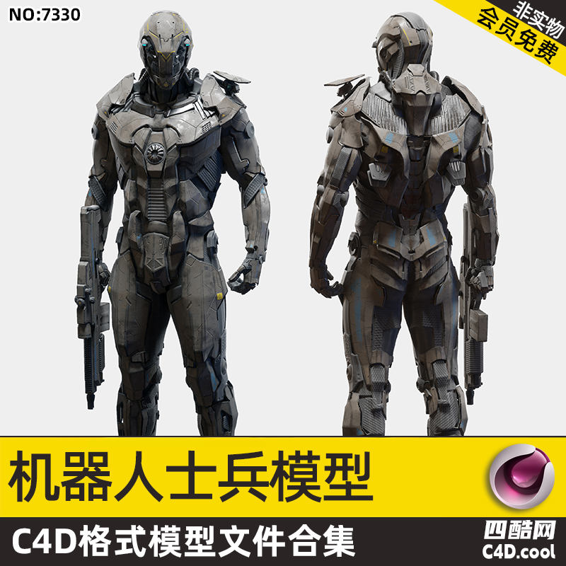 • C4D 机器人士兵模型、科幻机甲士兵素材、未来战争机器人模型、装甲外骨骼士兵模型、写实机械士兵模型、赛博朋克机器人素材