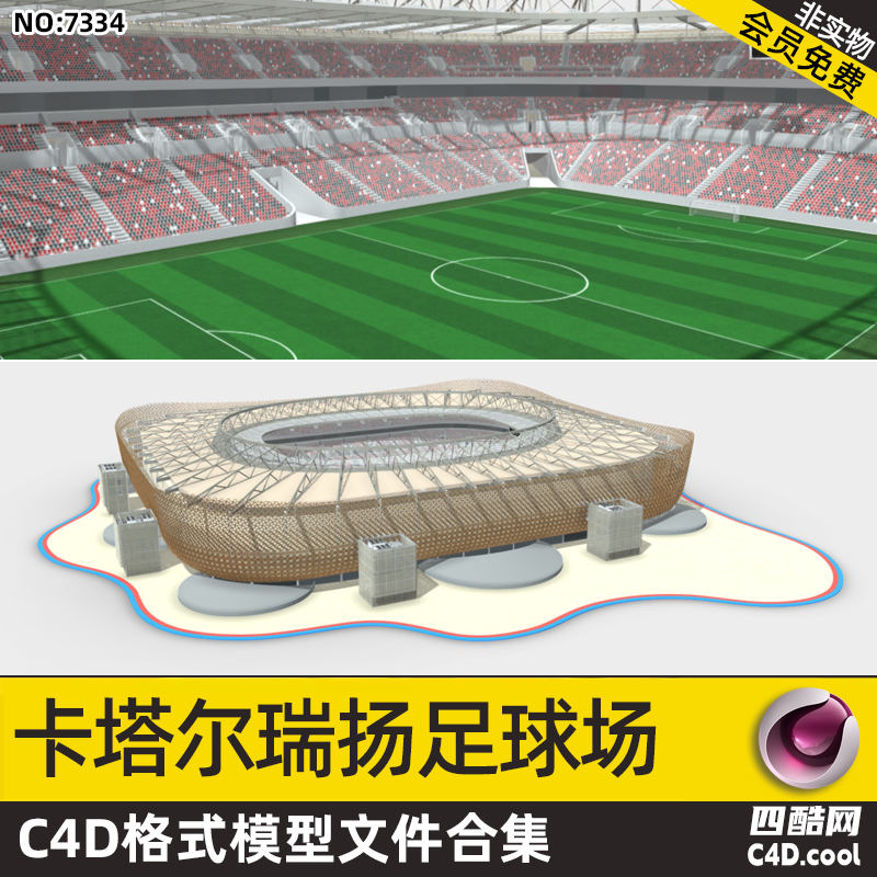 这是一套卡塔尔世界杯瑞扬足球场主题的 C4D 模型包,包含的核心内容如下: