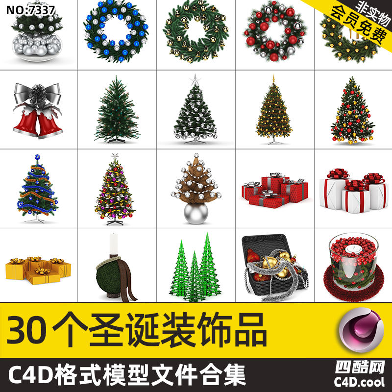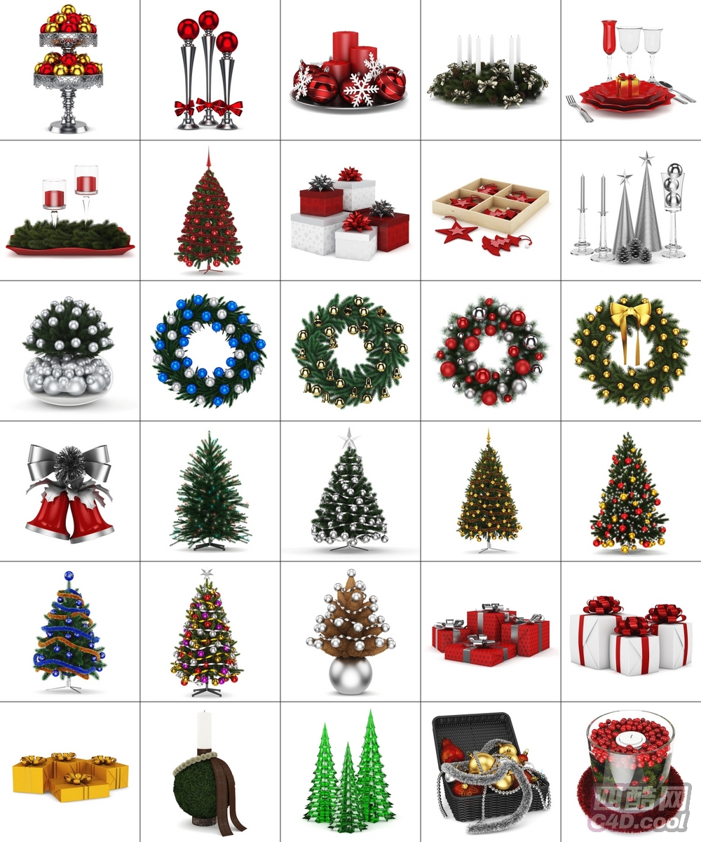 C4D 圣诞装饰品模型、圣诞树 C4D 素材、圣诞花环模型、节日礼品盒模型、圣诞餐桌布置素材、圣诞装饰配件包、全品类圣诞模型合集
