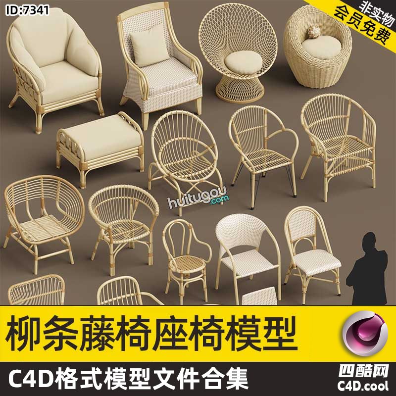 这是一套自然风柳条藤椅主题的 C4D 模型包,包含的核心内容如下: