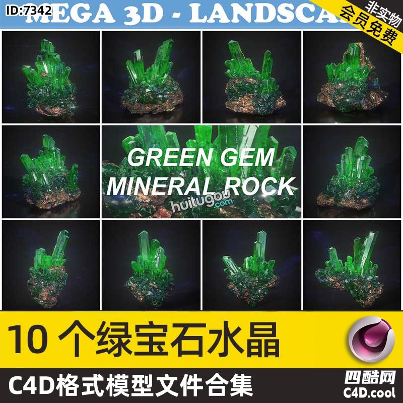 这是一套写实风格绿宝石水晶矿物的 C4D 模型包,包含的核心内容如下: