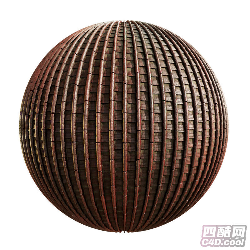 这是一套旧陶瓷圆形亚洲屋顶瓦 3D 纹理贴图,纹理以鳞片状圆形陶瓷瓦片为基础,层层交错堆叠并包裹在球体表面,完美模拟出瓦片在曲面上的自然弧度与重叠效果。瓦片主体为做旧的深棕褐色,表面带有细腻的竖纹肌理、风化磨损痕迹与哑光陶瓷质感,局部呈现出岁月侵蚀的斑驳色泽,整体充满古朴厚重的亚洲传统建筑韵味,非常适合用于中式古建筑、日式古寺、东南亚传统民居、园林景观等场景的 3D 建模渲染。